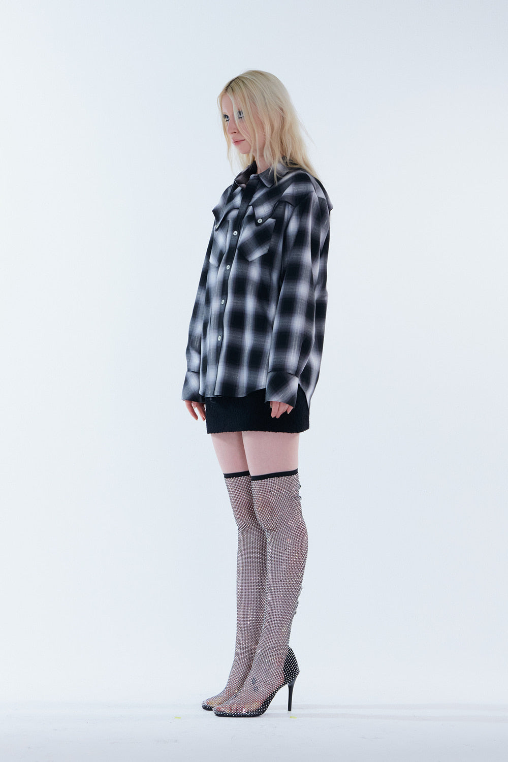 PIN STRIPE PLEATS SKIRT PANTS_GREY
