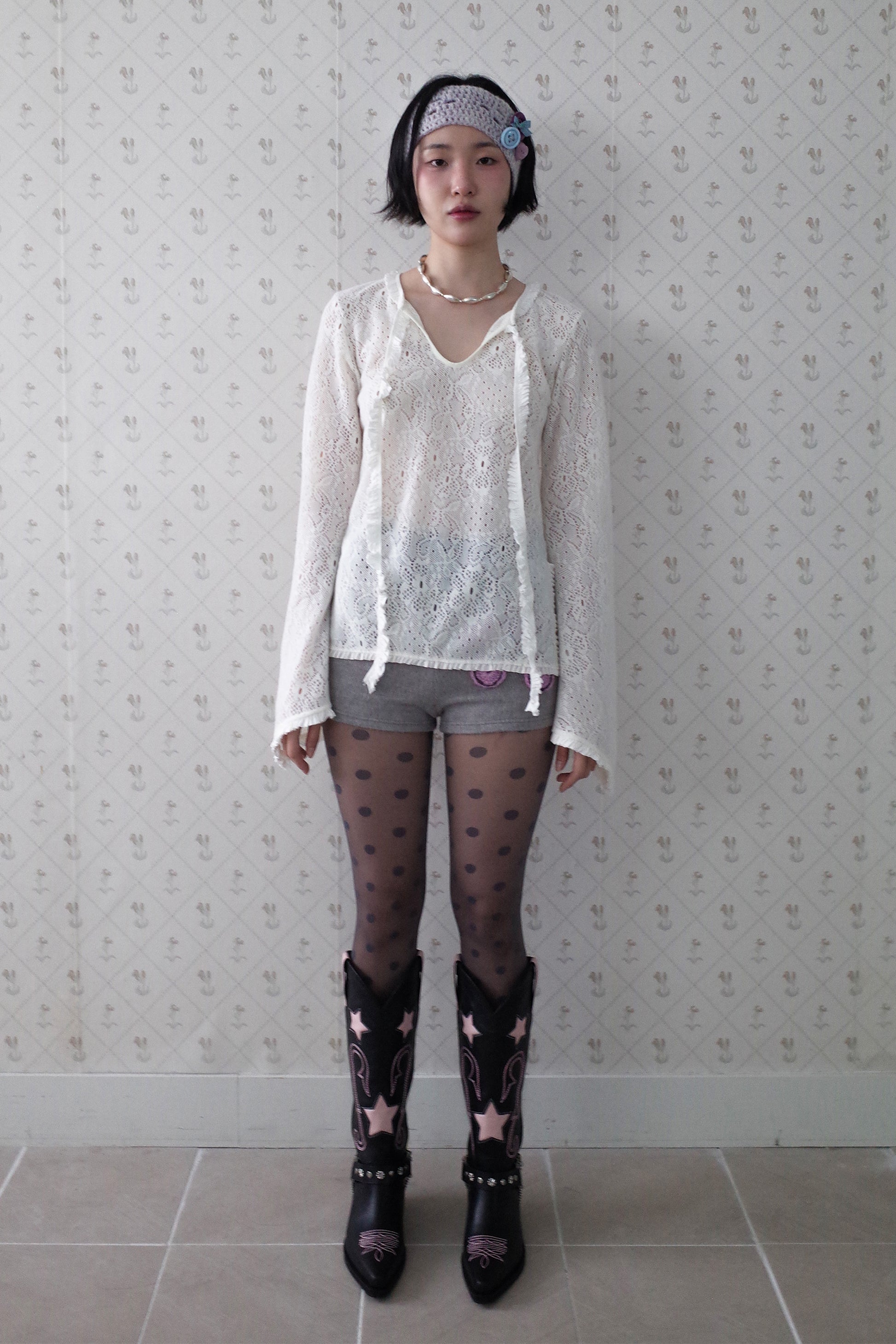 - 넥라인, 소매단, 밑단의 레이스 디테일