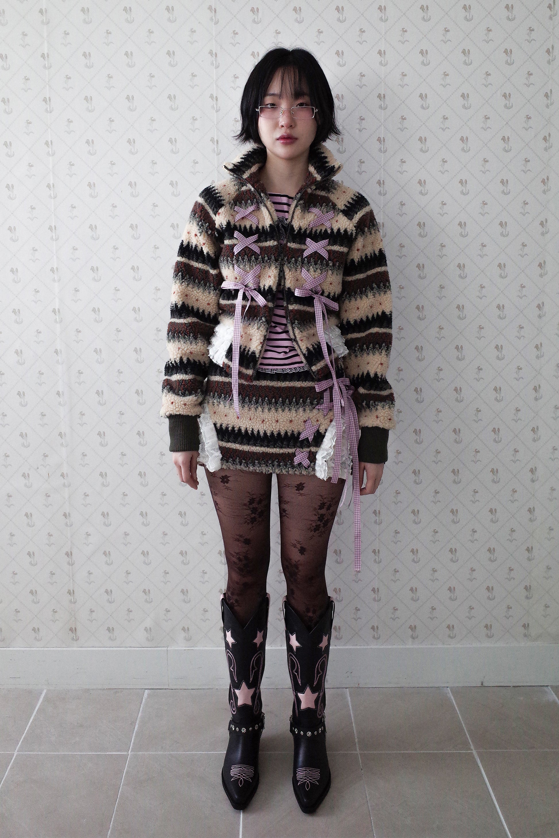 - 깅엄체크 리본과 두가지 레이스 프릴 포인트
