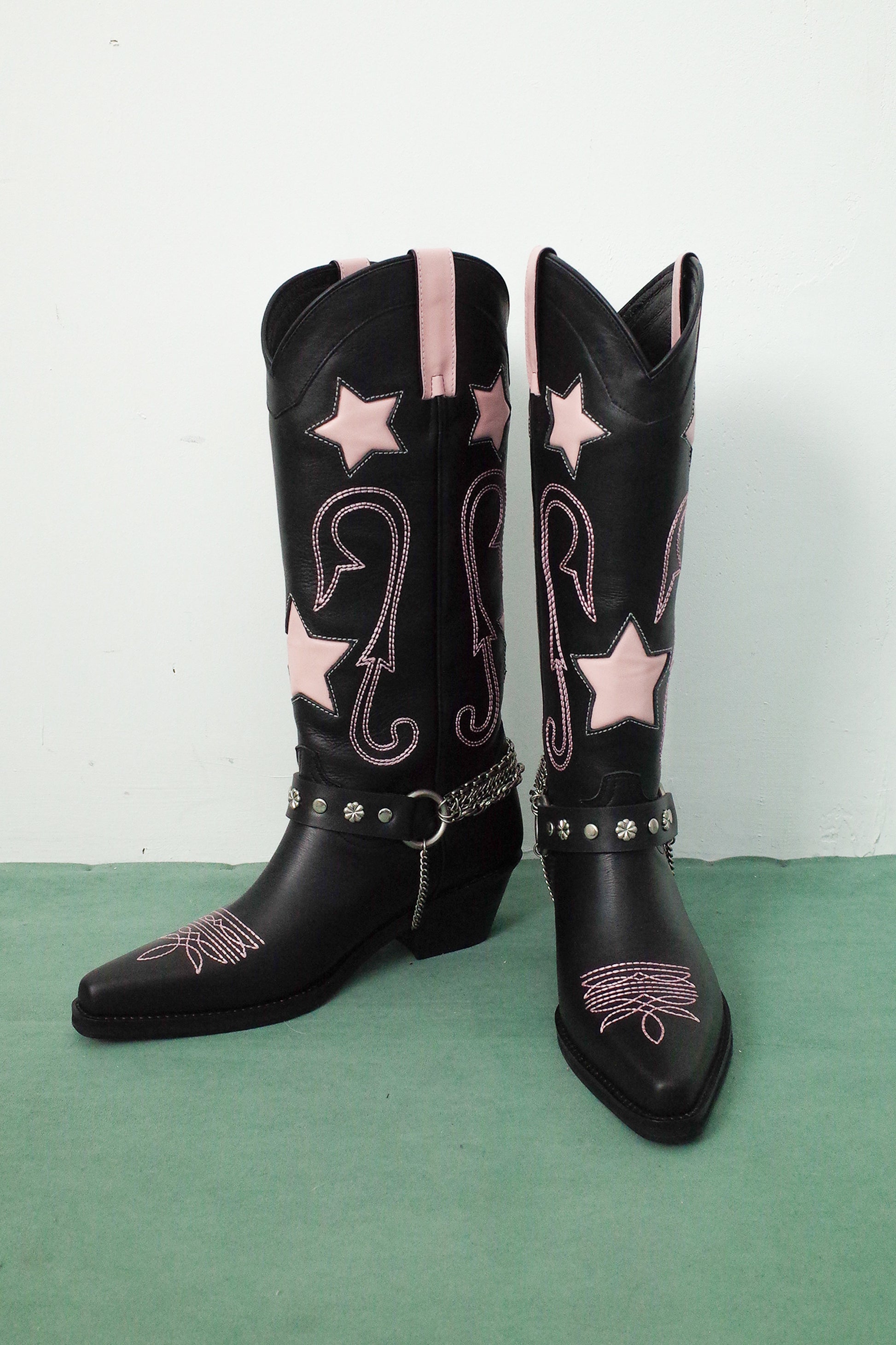 - 무릎 아래까지 오는 기장과 와이드한 샤프트 라인, 뾰족한 앞코와 살짝 돌출된 아웃솔 실루엣이 전통적인 웨스턴 무드를 현대적으로 표현합니다.